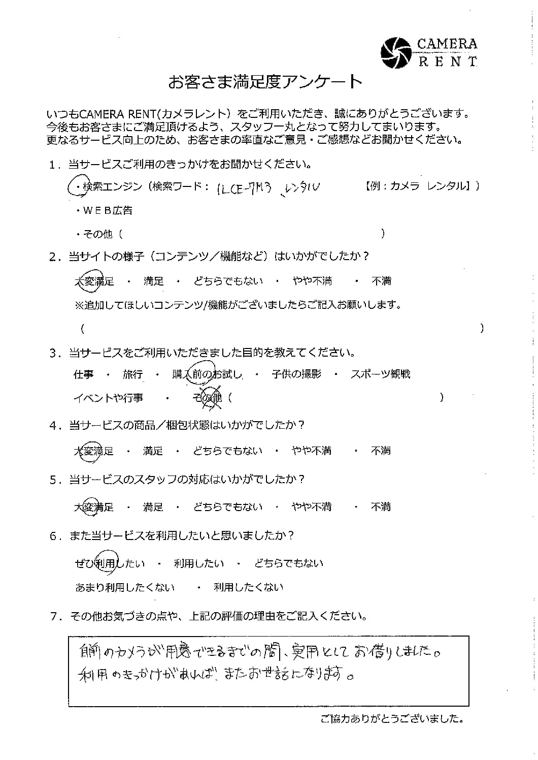 自前のカメラが用意できるまでの間、実用としてお借りしました。