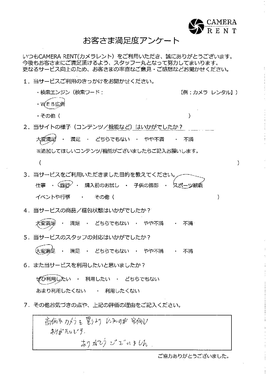 高価なカメラを買うより、レンタルの方が安価でありがたいです。