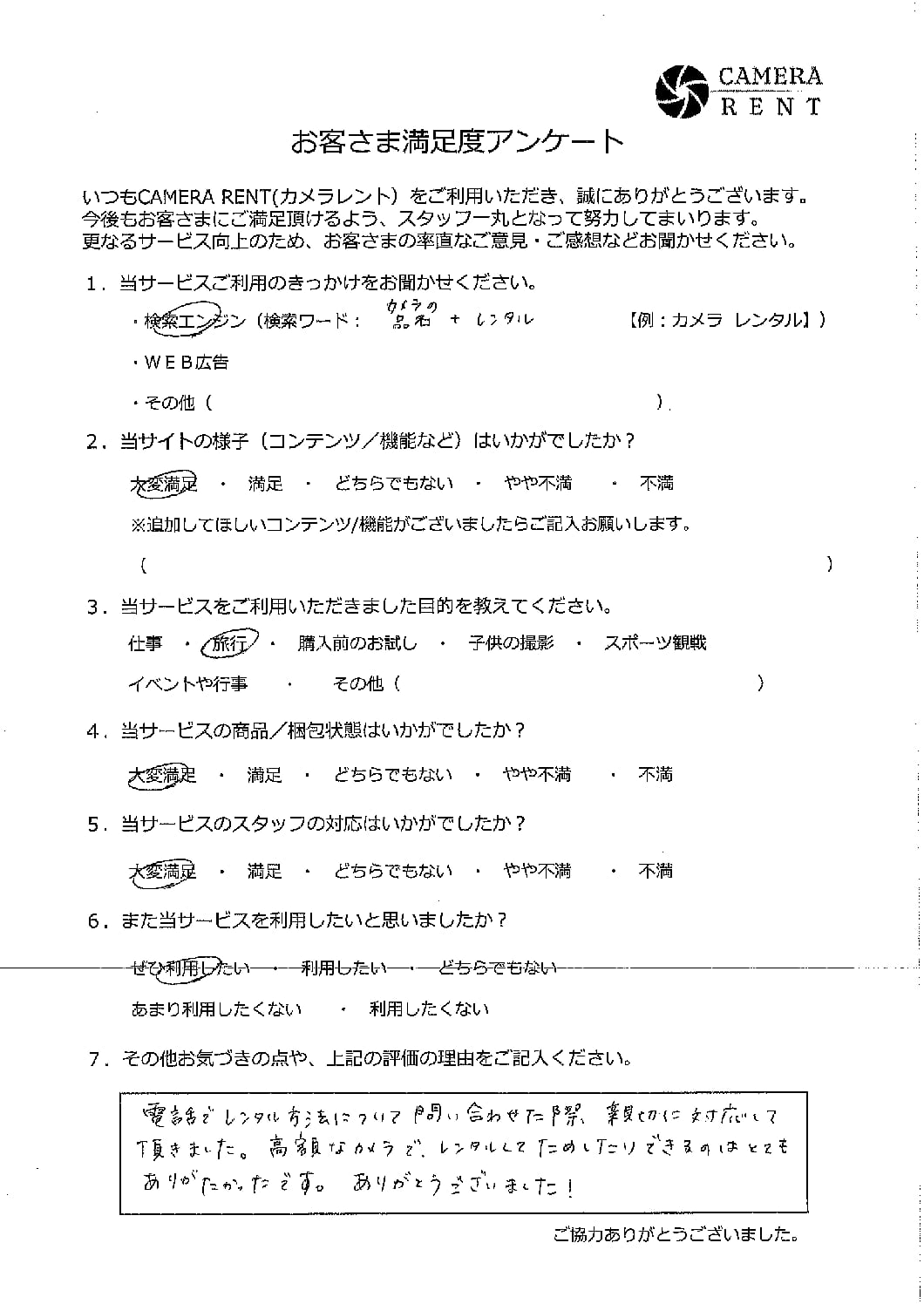 高額なカメラで、レンタルして試したりできるのはとてもありがたかったです。