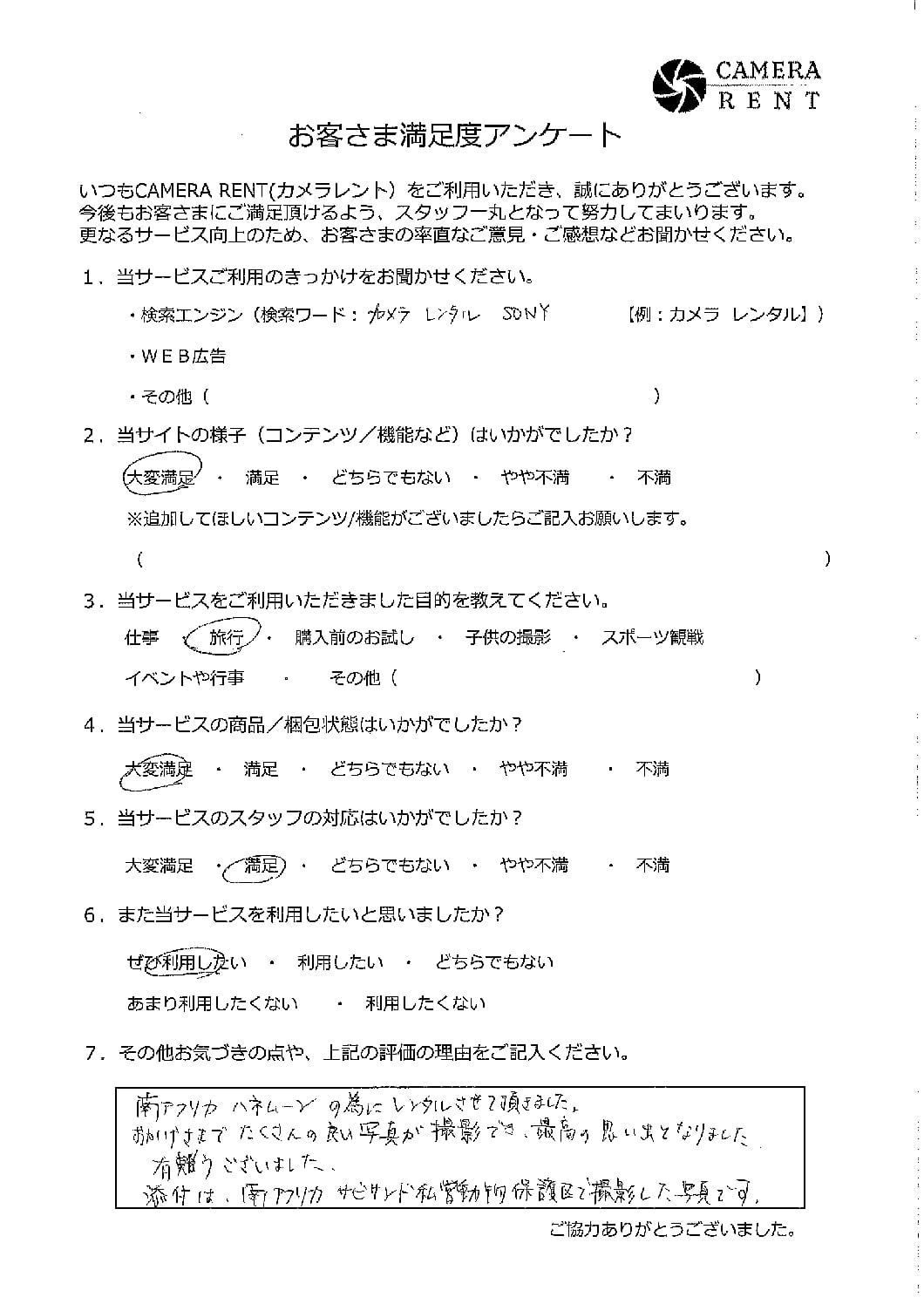 南アフリカハネムーンの為にレンタルさせて頂きました。