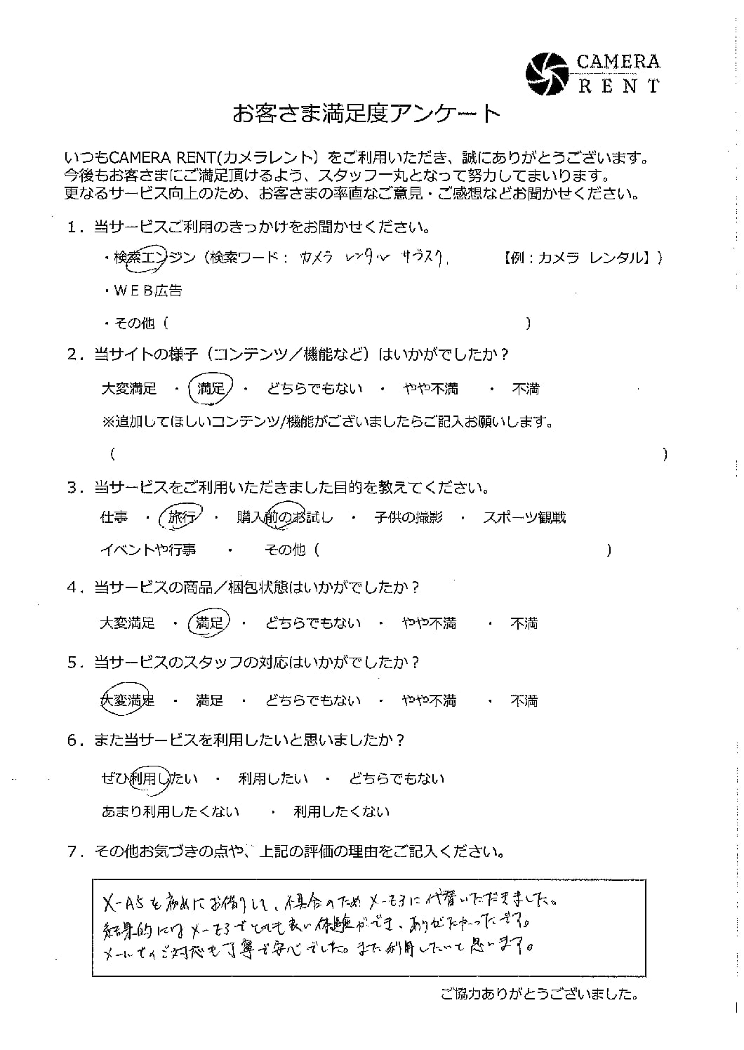 X-A5を初めてお借りして、不具合の為、X-T3を代替いただきました。
