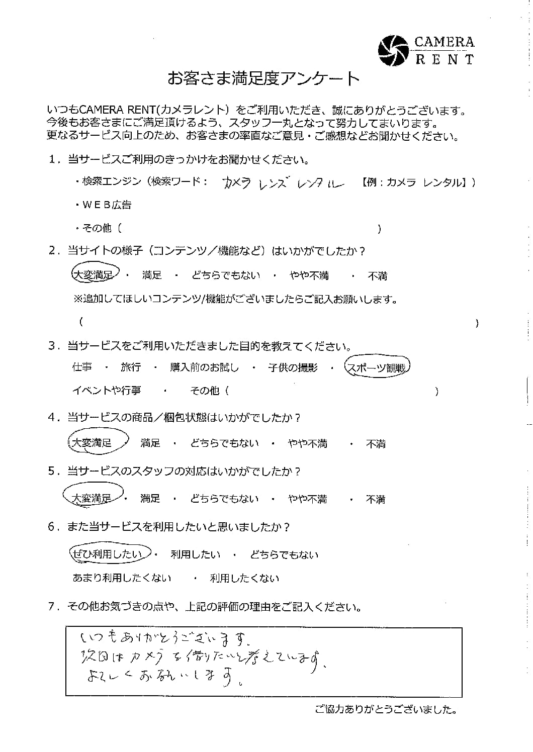 次回はカメラを借りたいと考えています。
