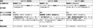 Nikon(ニコン)のレンズには主に「Gタイプ」「Dタイプ」「Eタイプ」という3つの種類があり、それぞれ絞り制御の仕組みや対応するカメラが異なります。