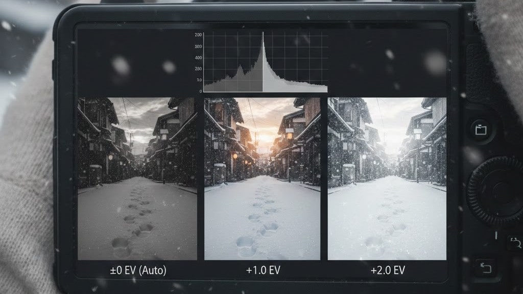 雪は非常に明るく、反射率が高い被写体のため、通常の撮影設定ではカメラ任せにすると意図しない仕上がりになりがちです。