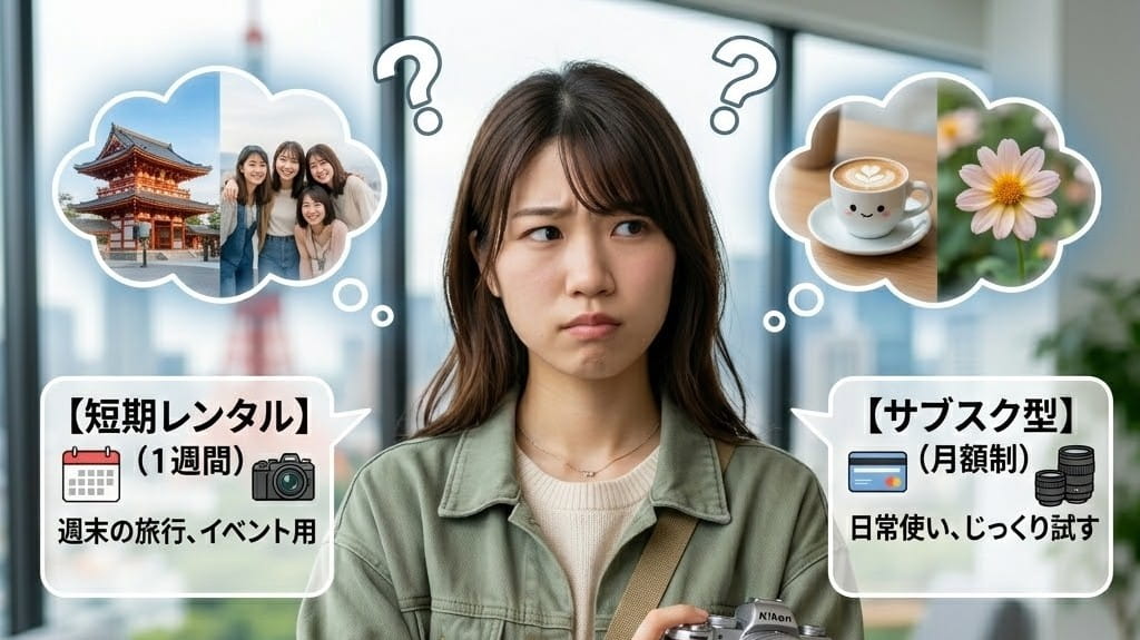 カメラレンタルには大きく分けて2つの形態があります。ここが「コスパ」を左右する最大の分岐点です。