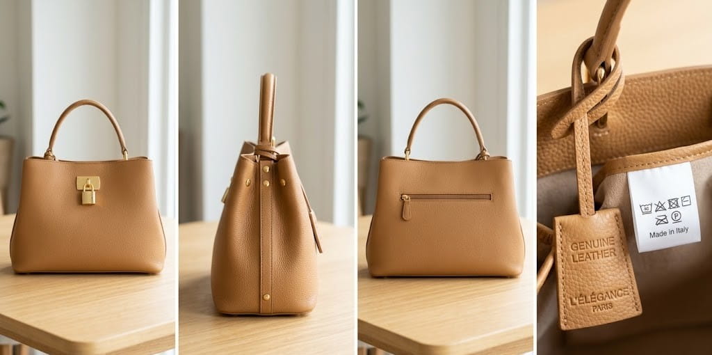 素材感が伝わる「生地のアップ」と、ブランドロゴの「マクロ撮影」を必ず1枚入れてください 。